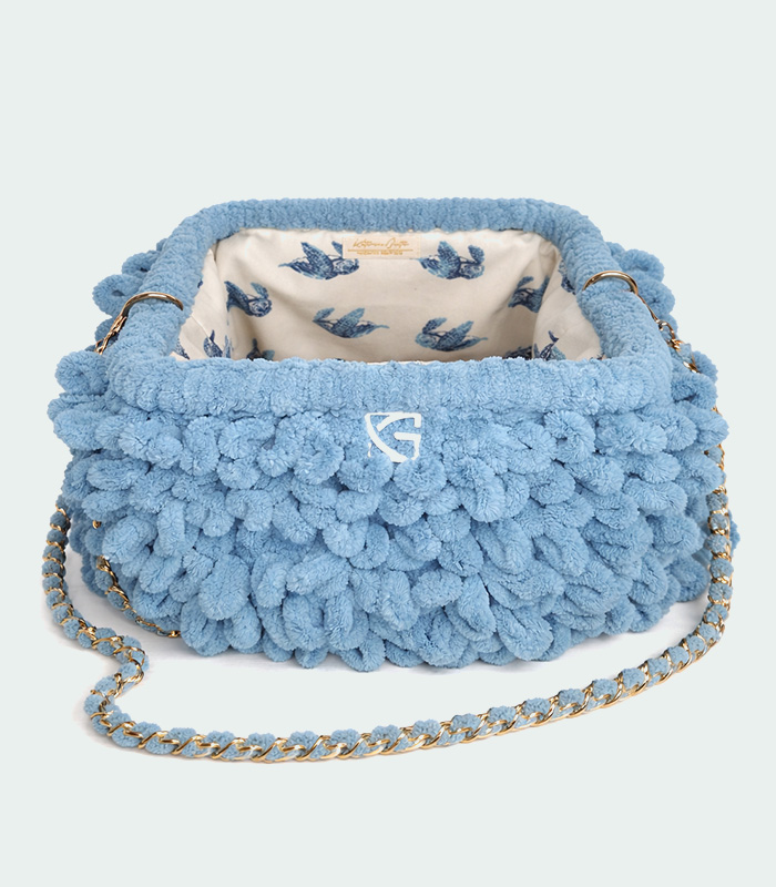 Η Sky Bloom είναι μια ρομαντική και ξεχωριστή τσάντα σε απαλή γαλάζια απόχρωση, εμπνευσμένη από τα χρώματα του ουρανού. Η αφράτη, chenille υφή της δημιουργεί ένα εντυπωσιακό τρισδιάστατο αποτέλεσμα που χαρίζει μοναδικό χαρακτήρα σε κάθε εμφάνιση.
